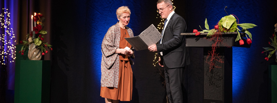 Síðani var Mentanarvirðisløn landsins handað. Hana fekk Sigrun Gunnarsdóttir við hesum grundgevingunum.