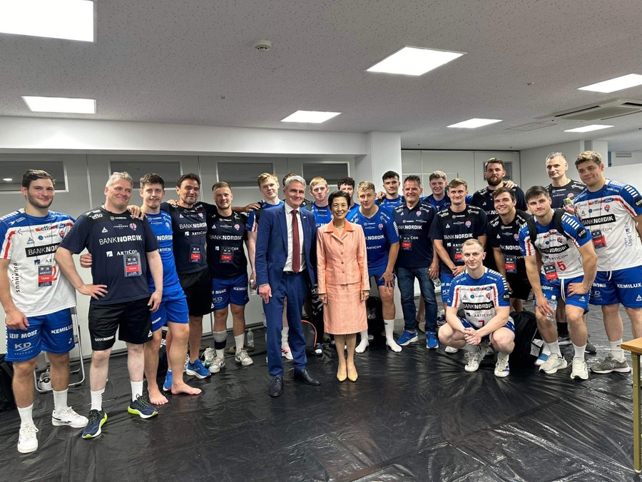Dagurin endaði í besta hondbóltsanda, tá Føroyar vunnu 29-30 ímóti Japan í einum vinardysti. Japanska Prinsessan Takamado, sum somuleiðis er heiðursforkvinna fyri japanska hondbóltssambandið, var hugtikin av flotta avrikinum hjá landsliðnum og ynskti teimum hjartaliga tillukku við sigrinum.